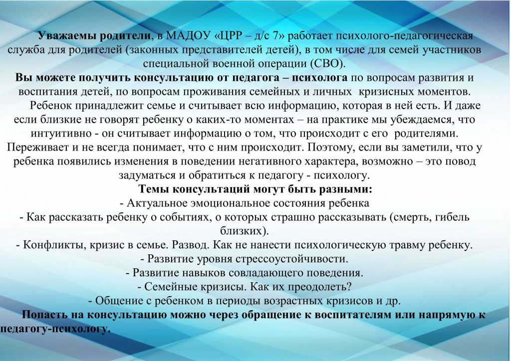 Информация о центре «Родительский университет». УВАЖАЕМЫЕ РОДИТЕЛИ! Центр «Родительский университет» проводит бесплатные консультации для родителей (законных представителей) детей, а также граждан, желающих принять на воспитание в свои семьи детей, оставшихся без попечения родителей. Консультации (график консультирования: с понедельника по пятницу с 09:00 до 19:00) проводятся в очном, дистанционном, индивидуальном